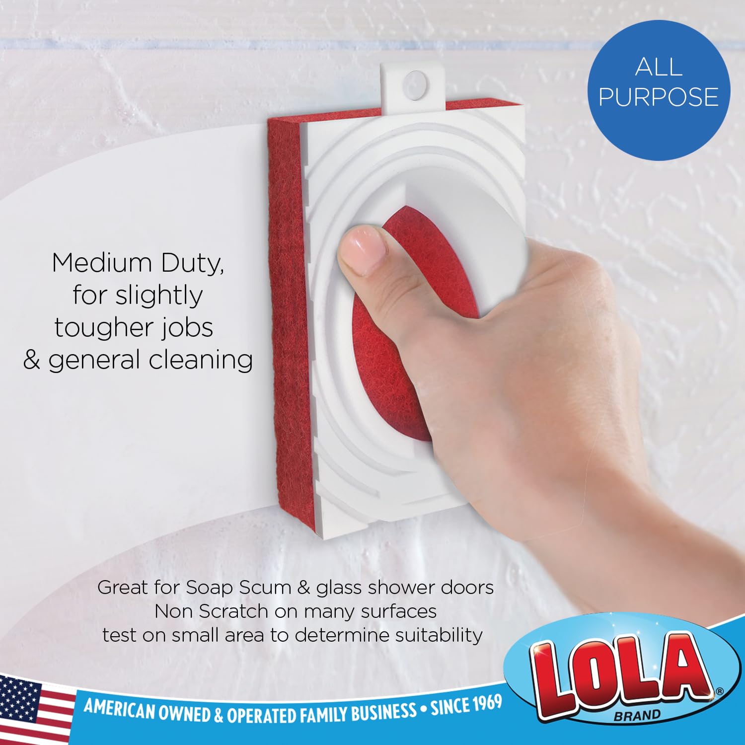 - ➤ COMFORTABLE HANDLE – Lola's all-purpose surface cleaner comes with a comfortable finger grip handle, this scrubber makes cleaning your basement or garage comfortable and easy to use. Rinse pad clean after use.