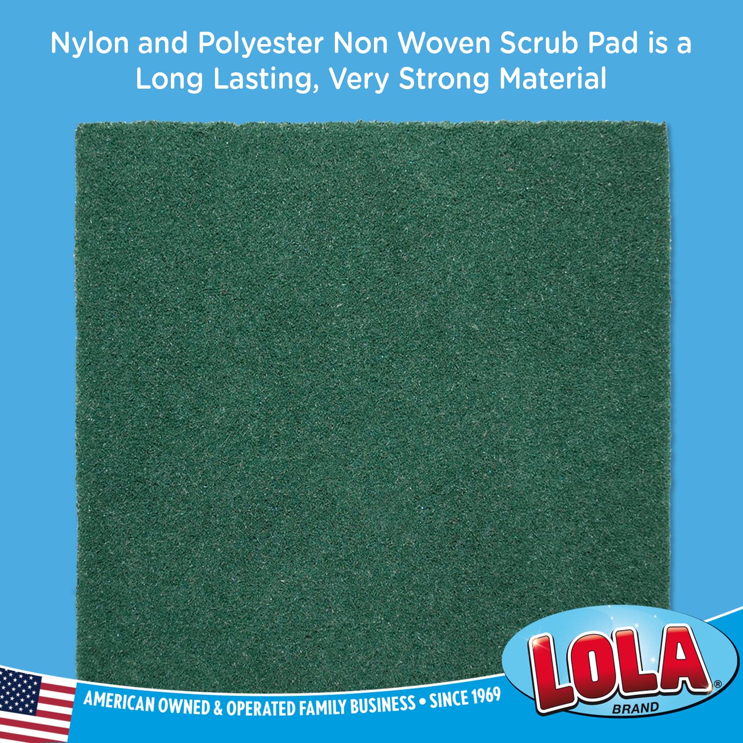 - ➤ JUMBO SIZED PADS - Lola Pot Brite jumbo scouring fiber pad is made from long-lasting nylon & polyester non-woven. Each pad is a 6" x 6" jumbo heavy-duty scourer that is 50% larger than most scouring pads.