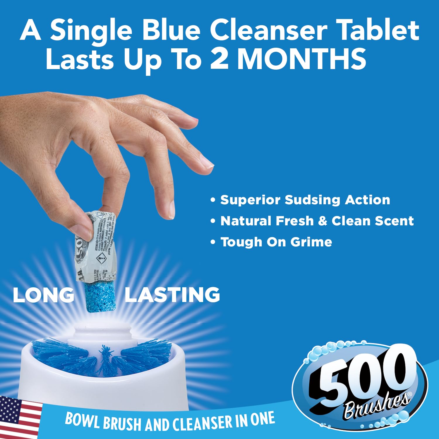 - SELF-DISPENSING CLEANING POWER – A solid cleaner tablet sits inside the refillable brush head and releases sudsy cleanser as you scrub. One long-lasting tablet can clean for up to 2 months—no liquid bottles required.